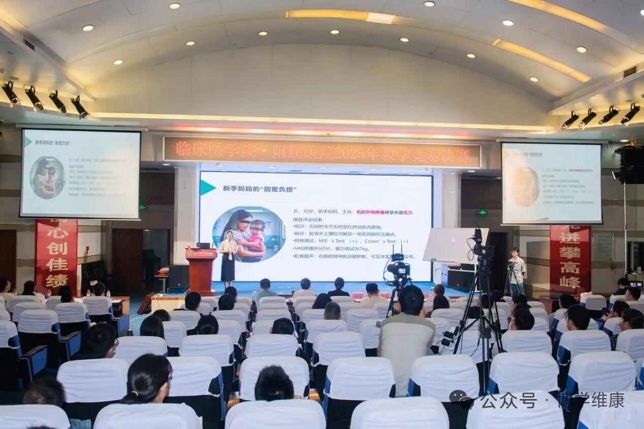 以临床为基,以教学为桥。9月18日下午,2025年第十六届临床医学院教学创新竞赛决赛精彩上演。本次竞赛有来自21个教研室25名教师参加,经过初赛的激烈角逐,6名参赛教师脱颖而出入围决赛。康复医学系教师汪丽深度融合临床实践与学科理论,充分展现出扎实的专业功底、创新的教学设计和优秀的课堂掌控力,呈现了生动活泼、富有启发的精彩课堂,最终获得一等奖和“最佳人气奖”。