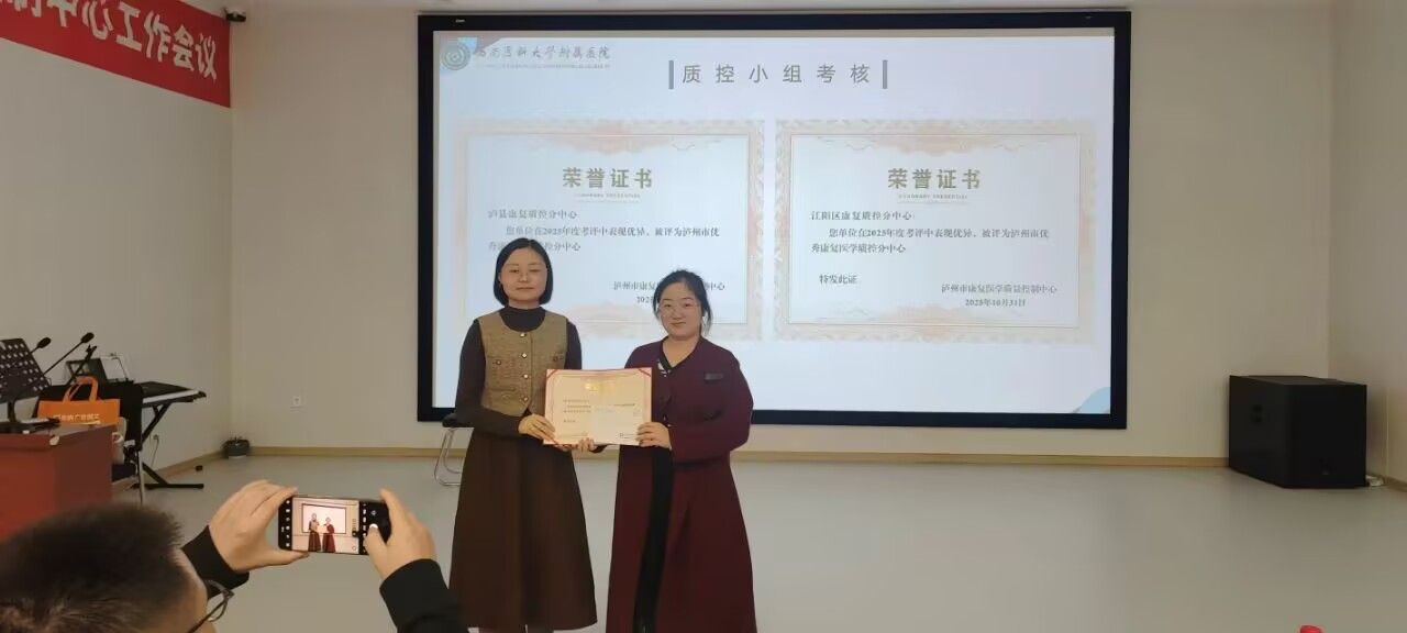 2025年10月30日,泸州市康复医学质控工作会议圆满召开。市级康复质控专家及区县分中心质控专家共到场40余人。会议开始,由泸州市康复医学质控中心业务主任张驰主任进行了2025年康复质控工作的汇报与总结,从质控中心专家人员调整,区县分中心工作制度及考核标准的实施情况,及2025年已经完成的质控工作等几方面进行了详细的阐述。会议着重强调了2025年国家质控中心重点关注指标,与会人员深刻了解了康复医学质控指标的内涵及重要性,并就相关内容开展了热烈的讨论。最后,会议重点表彰了在2025年积极开展质控工作的分中心江阳区康复质控分中心及泸县质控分中心,并鼓励其他分中心在来年积极开展工作,共同为泸州市康复医学学科健康、规范的发展,共同努力。