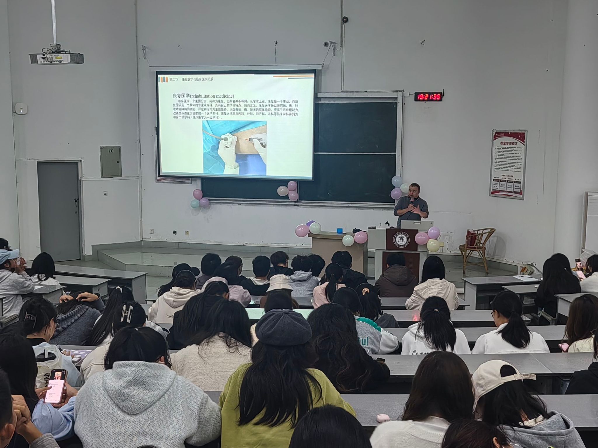 廖鹏从康复行业现状、岗位需求与核心能力三方面展开讲解,结合当前就业数据,分析了当前就业趋势,具体介绍了医院、社区、专科机构等不同方向的岗位要求。他提出“专业基础+实践能力+方向定位”的成长策略,指导学生根据自身特点制定阶段性目标与长远规划。互动环节中,同学们围绕证书考取、实习安排、跨领域发展等问题踊跃提问,廖鹏逐一给予细致解答。整场讲座内容实用、氛围活跃,有效帮助学生厘清职业困惑,增强专业信心。