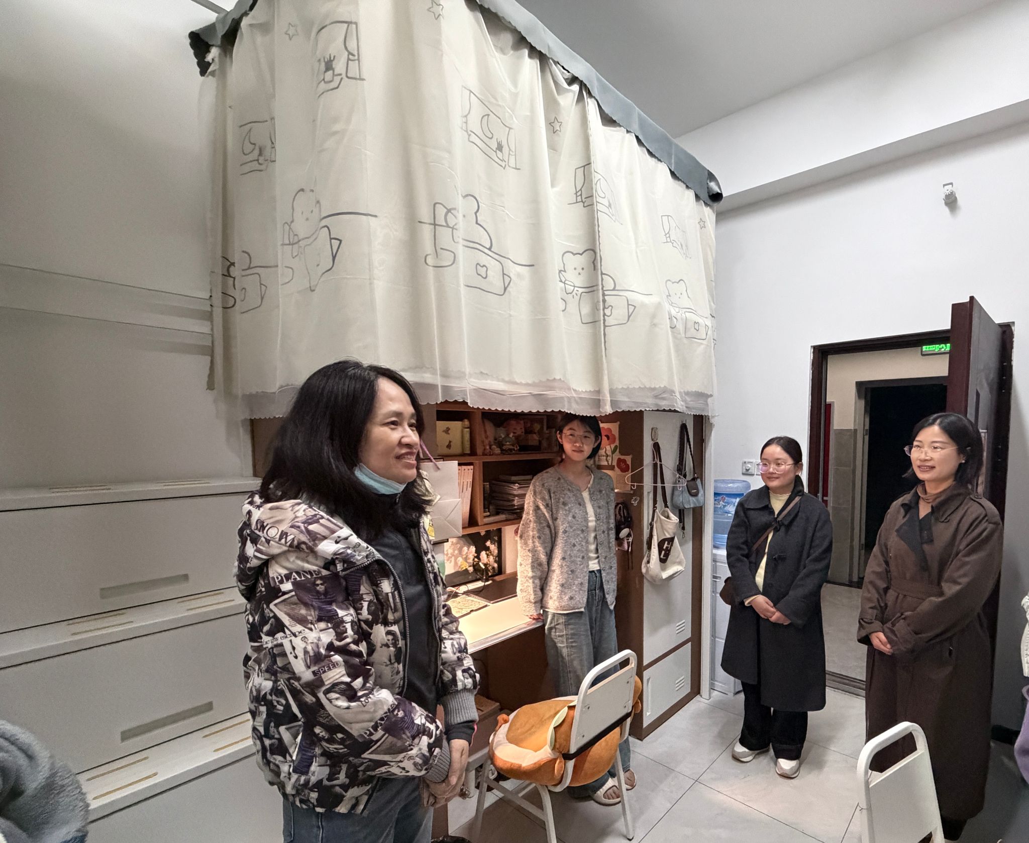 走访过程中,何红媛与同学们亲切交谈,细心询问假期生活、返校适应情况以及新学期规划。针对同学们提出的学业困惑、生活困难等问题,耐心解答并给予针对性建议。同时,老师们重点查看了寝室卫生、用电安全等情况,提醒同学们增强安全意识,遵守宿舍管理规定,共同营造整洁、舒适、安全的居住环境。对于返校后可能出现的焦虑情绪,老师们也进行了现场疏导,鼓励同学们及时调整状态,以积极饱满的精神迎接新学期挑战。
